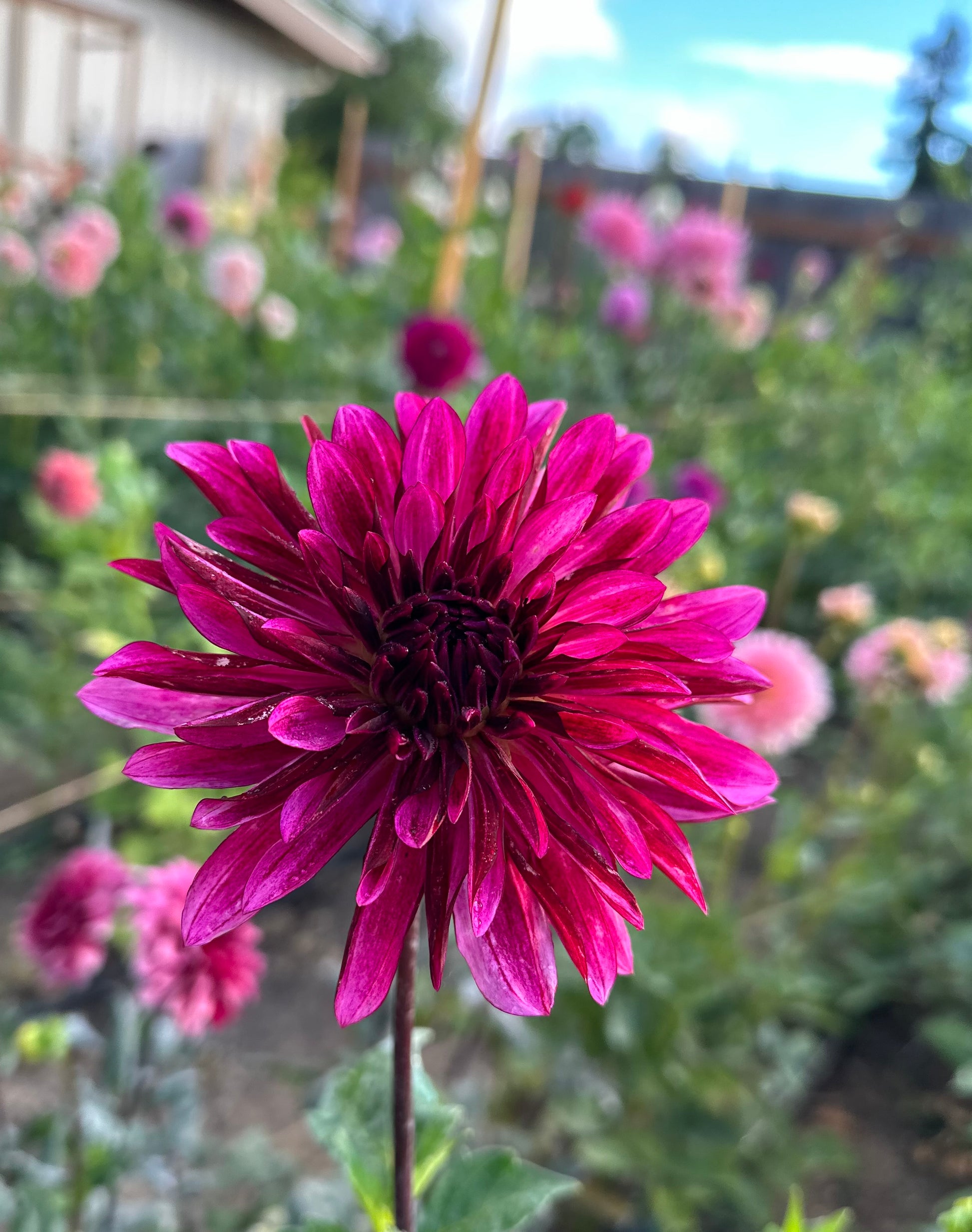 RNX Tana dahlia is a prolific stellar-form dahlia with stunning double purple blooms and a robust growth habit. The tuber is bred in Eugene, Oregon, as part of the RNX breeding program. It is a popular choice for cut flower gardens, praised for its abundant blooms throughout the season